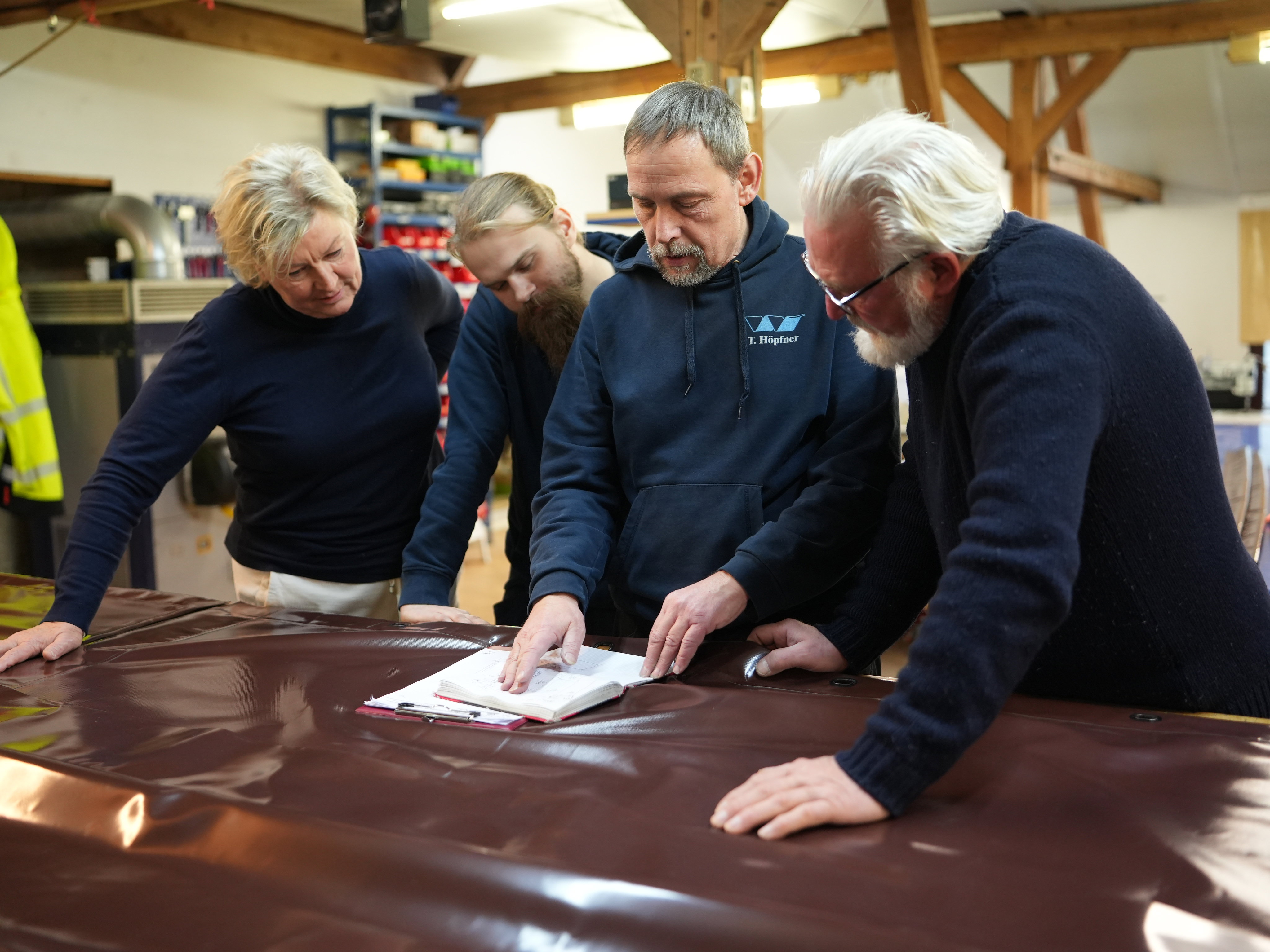 Auch besondere Kundenwünsche gehören dazu. Für VIP-Flieger im Nahen Osten produziert das Unternehmen zum Beispiel Flugzeugschonteppiche nach Maß. Diese kommen zum Einsatz, um den exklusiven Bodenbelag zu schützen, wenn Wartungsarbeiten am Flugzeug durchgeführt werden oder die Familie des Scheichs unterwegs ist. „Daneben fertigen wir Triebwerksabdeckungen, die die Technik gegen Wüstensand und UV-Einstrahlung schützen. Hierzu fliegt ein Mitarbeiterteam auch Flughäfen in Europa und Amerika an, um dort vor Ort Anpassungen an den Produkten vorzunehmen“, erzählt Jens Möller. Der Ehemann von Hannelore Wrage- Möller hat lange bei Lufthansa in der Qualitätssicherung gearbeitet und kennt sich mit der Materialplanung von Fluggesellschaften aus.