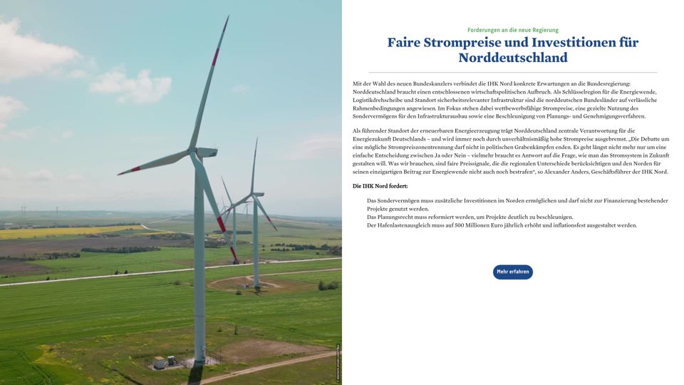 Forderung der IHK Nord: Norddeutschland braucht einen entschlossenen wirtschaftspolitischen Aufbruch.